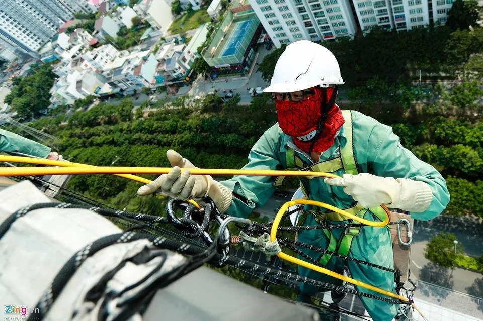 Cuối năm 2017, An lại làm tôi ngạc nhiên về bộ ảnh của những công nhân lau kính ở TPHCM. Không hề có sắp đặt, “100% nguyên liệu” tự nhiên như An nói. Những người thợ bình thường, thô ráp lau kính của những tòa nhà chọc trời ở TPHCM và tình cờ, người thợ ấy tạo hình thành một trái tim.